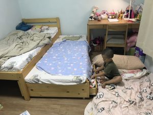 晚上陪毛毛豆豆睡觉,毛毛要睡空调房,豆豆一点不舒服,不可以睡空调房。豆豆每天爱姐姐爱得天天姐姐睡着啦躺到姐姐旁边睡,不肯和我去另一个房间。